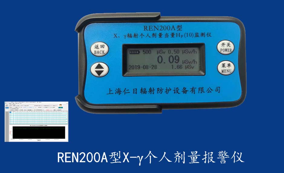 REN200A型X、γ輻射個人劑量當(dāng)量HP(10)監(jiān)測儀(簡稱:個人劑量報警儀)內(nèi)置高靈敏度蓋格計數(shù)管為探測器,主要用來監(jiān)測各種放射性工作場所的X、γ以及硬β射線的輻射,具有響應(yīng)快,測量范圍寬的特點。能顯示工作場所的劑量當(dāng)量率和累積劑量,更換電池時,日期及累積數(shù)據(jù)能永久保存。可選配RenRiPersonal個人劑量管理軟件,該軟件可存儲多個人的歷史數(shù)據(jù),能記錄日累積、月累積、年累積、輻照時長、計算平均劑量率、扣除或不扣除本底輻射,且以文字和圖譜的方式展現(xiàn)數(shù)據(jù)。廣泛應(yīng)用于核電站、加速器、鋼鐵、化工、同位素應(yīng)用、工業(yè)X、γ無損探傷、放射醫(yī)療、鈷源治療、γ輻照、放射性實驗室、核設(shè)施周圍環(huán)境監(jiān)測等領(lǐng)域中的工作人員進行個人安全防護監(jiān)測及放射性提示。&nb